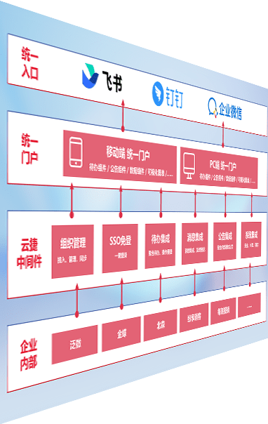 对协作平台提供支持服务,,支持企业应用与协作平台对接,,,,包含组织同步、、消息集成、、、、待办集成等。。。支持目前主流的协作平台:钉钉、、企微和飞书。。。